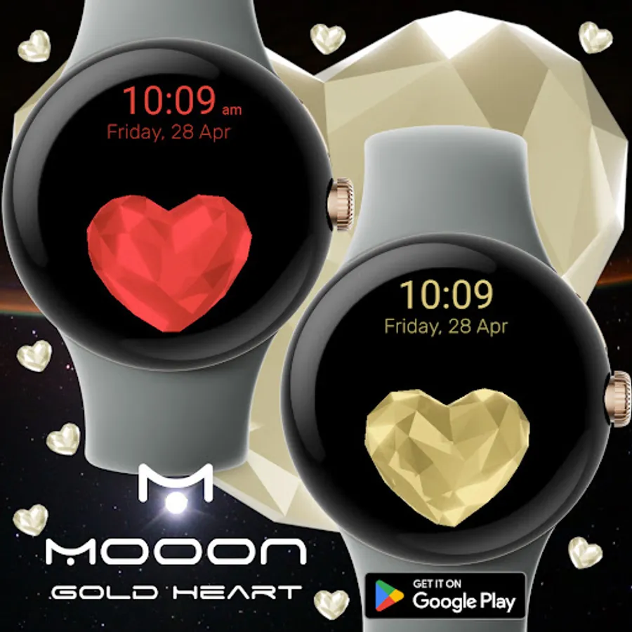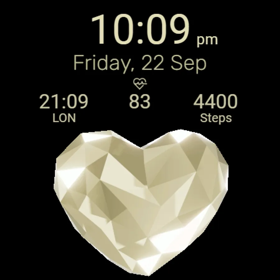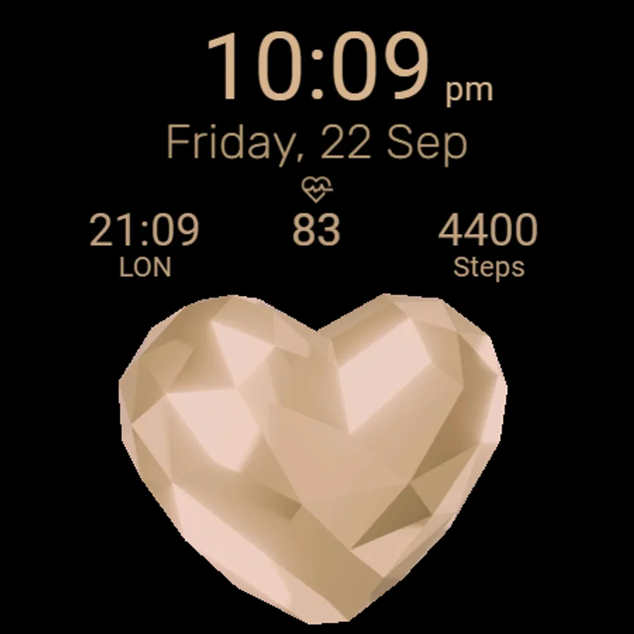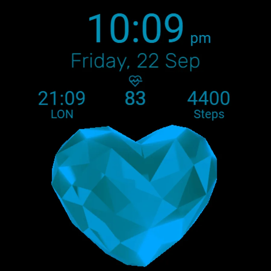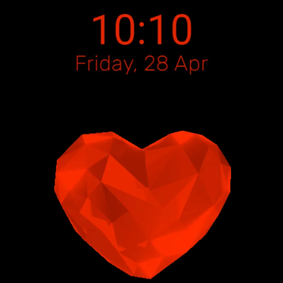 Watch the face with an animation of a shimmering heart in 13 colors for Wear OS.