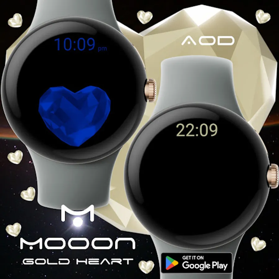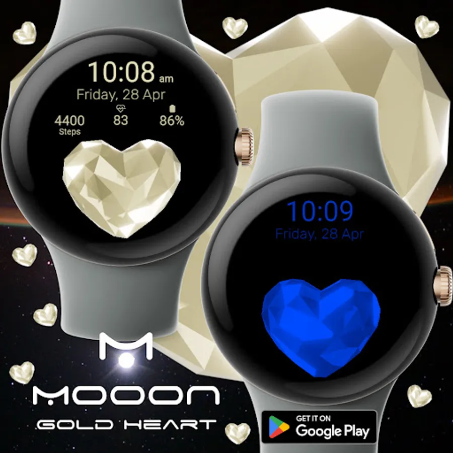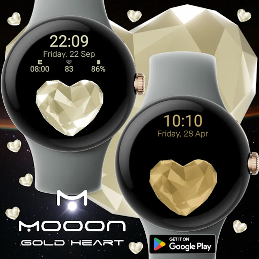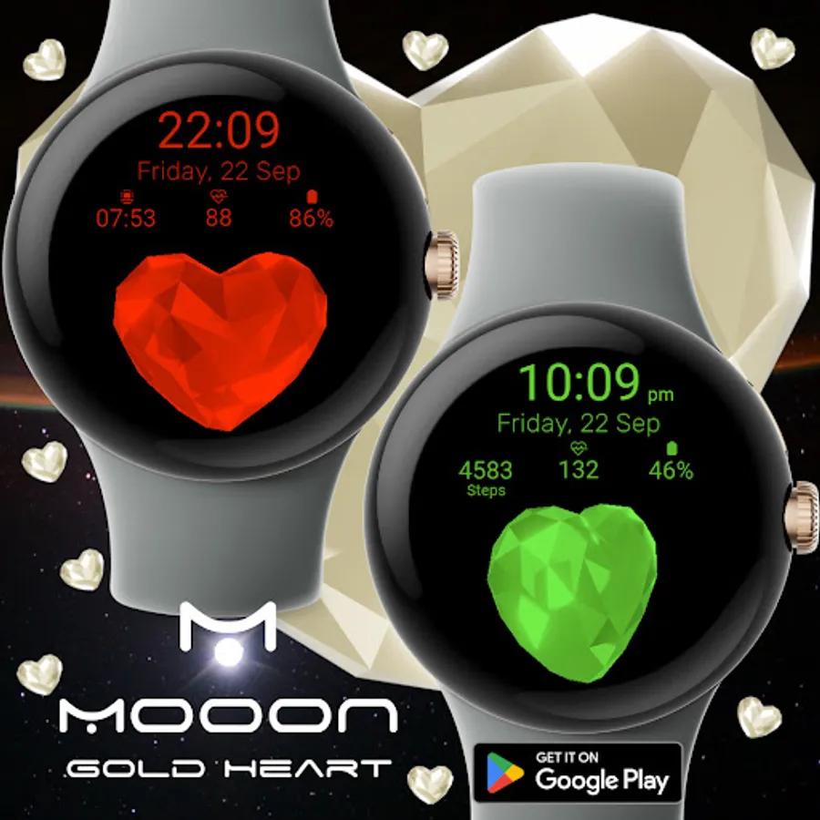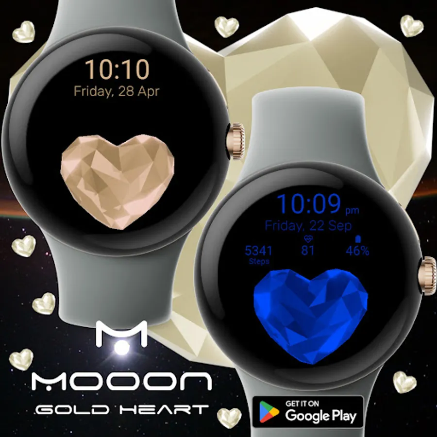 Watch the face with an animation of a shimmering heart in 13 colors for Wear OS.