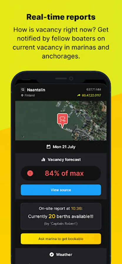 We combine satellite data, weather data and local reports to provide vacancy forecasts and current status of hundreds of guest harbors and anchorages along the coast.