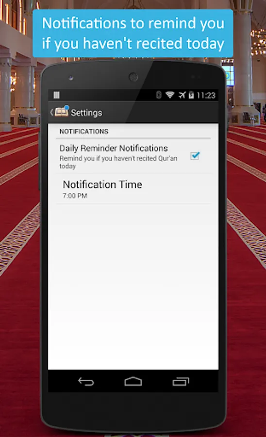 Reminder notifications to remind you if you haven't recited the Qur'an today