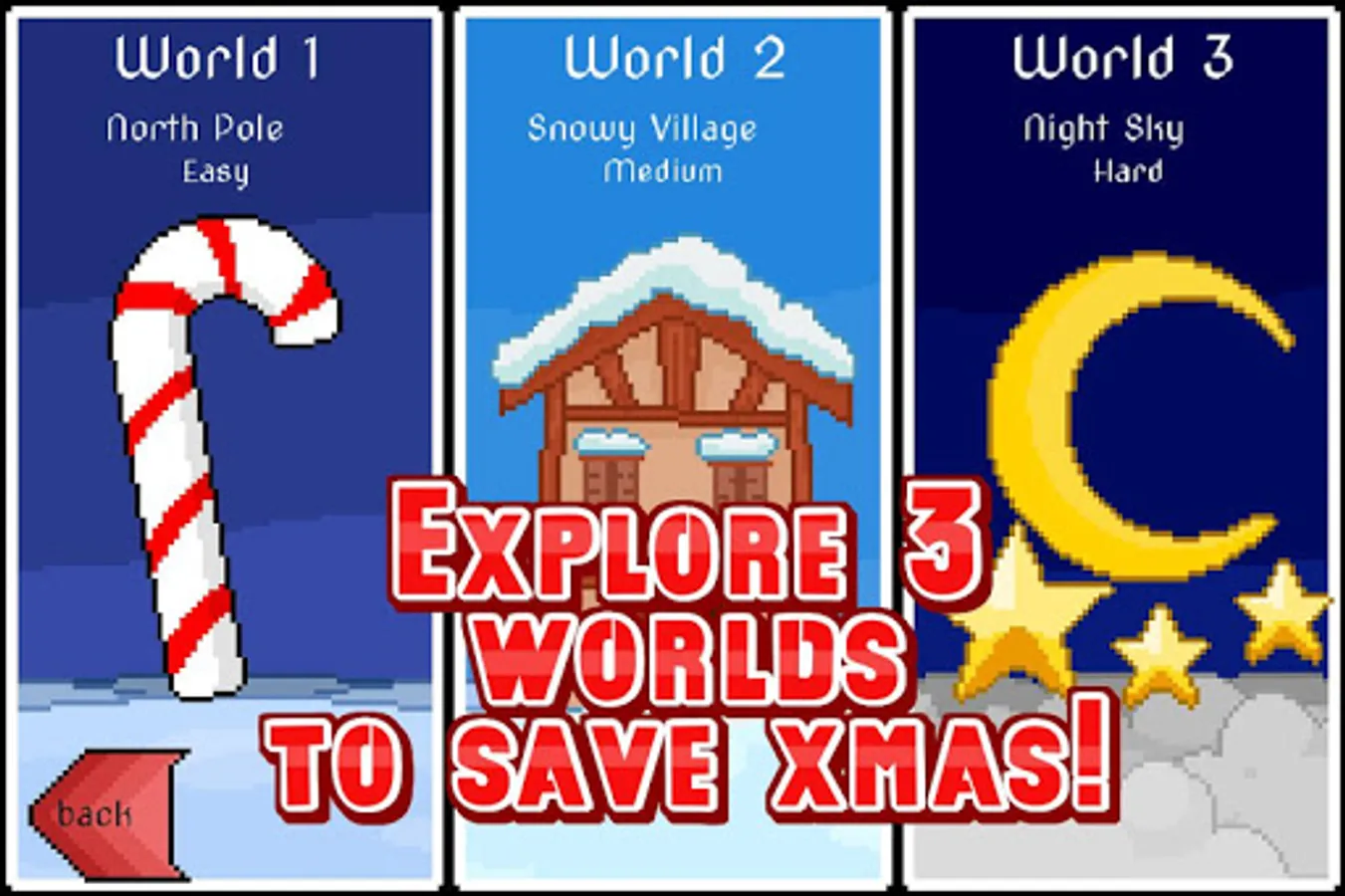 Kuru kaj saltu, dum via veturo tra la Nordpolo! Ludu en 3 mondoj kaj 15 niveloj, kaj savu kristnaskan tagon!