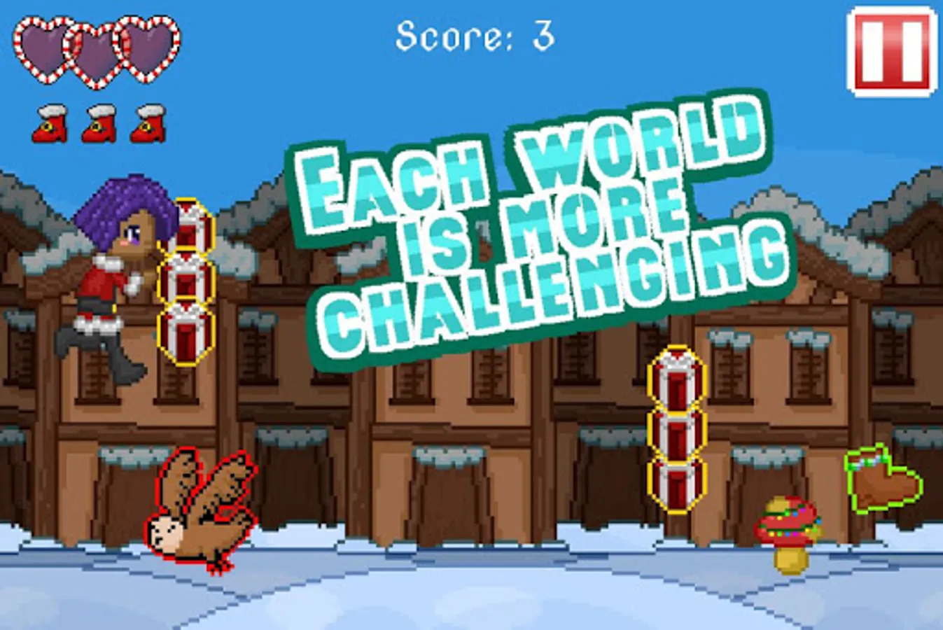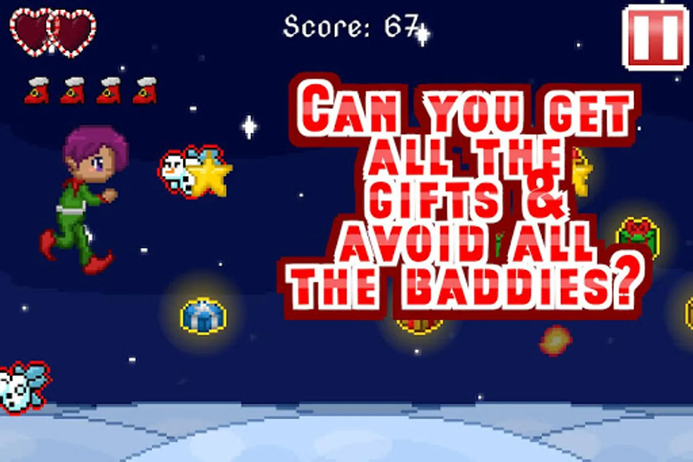 Play as one of Santa's loyal Christmas Elves as you chase after Santa, rescuing gifts from being destroyed or stolen by wild animals and other wild bad guys as you run, jump, and dodge through 15 levels across 3 worlds of Christmas chaos!