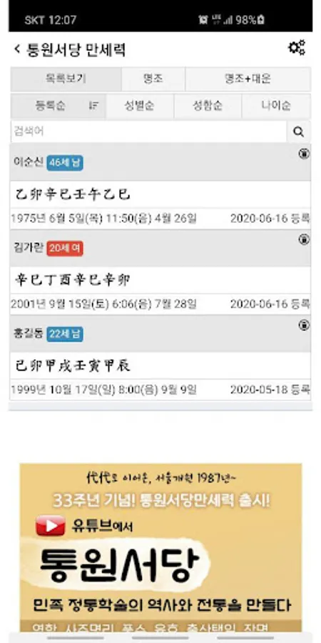 In addition to the four weeks of origin, Daewoon and Seunun can be viewed together from left to right.