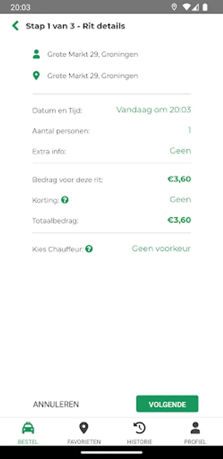 Indicate your wishes in advance and see in advance who your driver is and what you have to pay. You can pay in-app with iDeal or credit card.