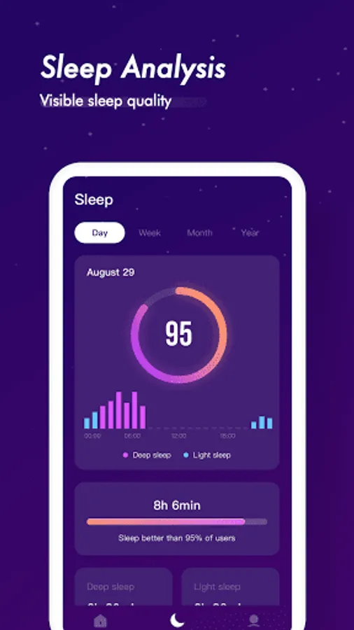 Sleep assistant, you can set your wake time, we will calculate your sleep quality and score according to your sleep time intelligently;