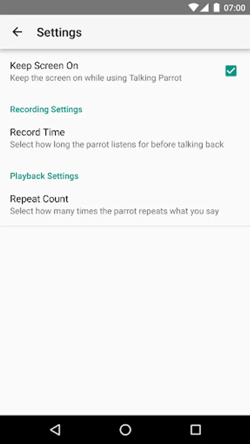 Upgrade to Talking Parrot Pro to save sounds, set them as your ringtone and control recording.