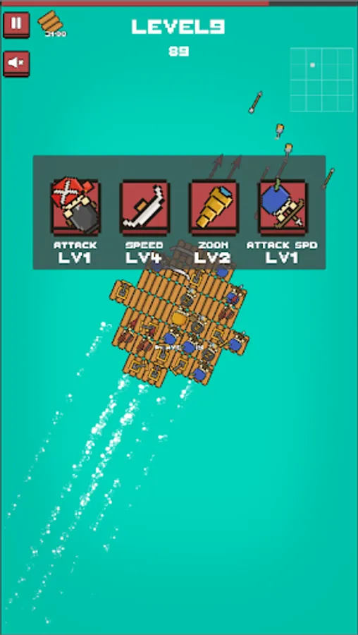 A pixel game with a raft in the sea. Upgrade your own raft to become more powerful.Level up each time You can add abilities to your own raft.