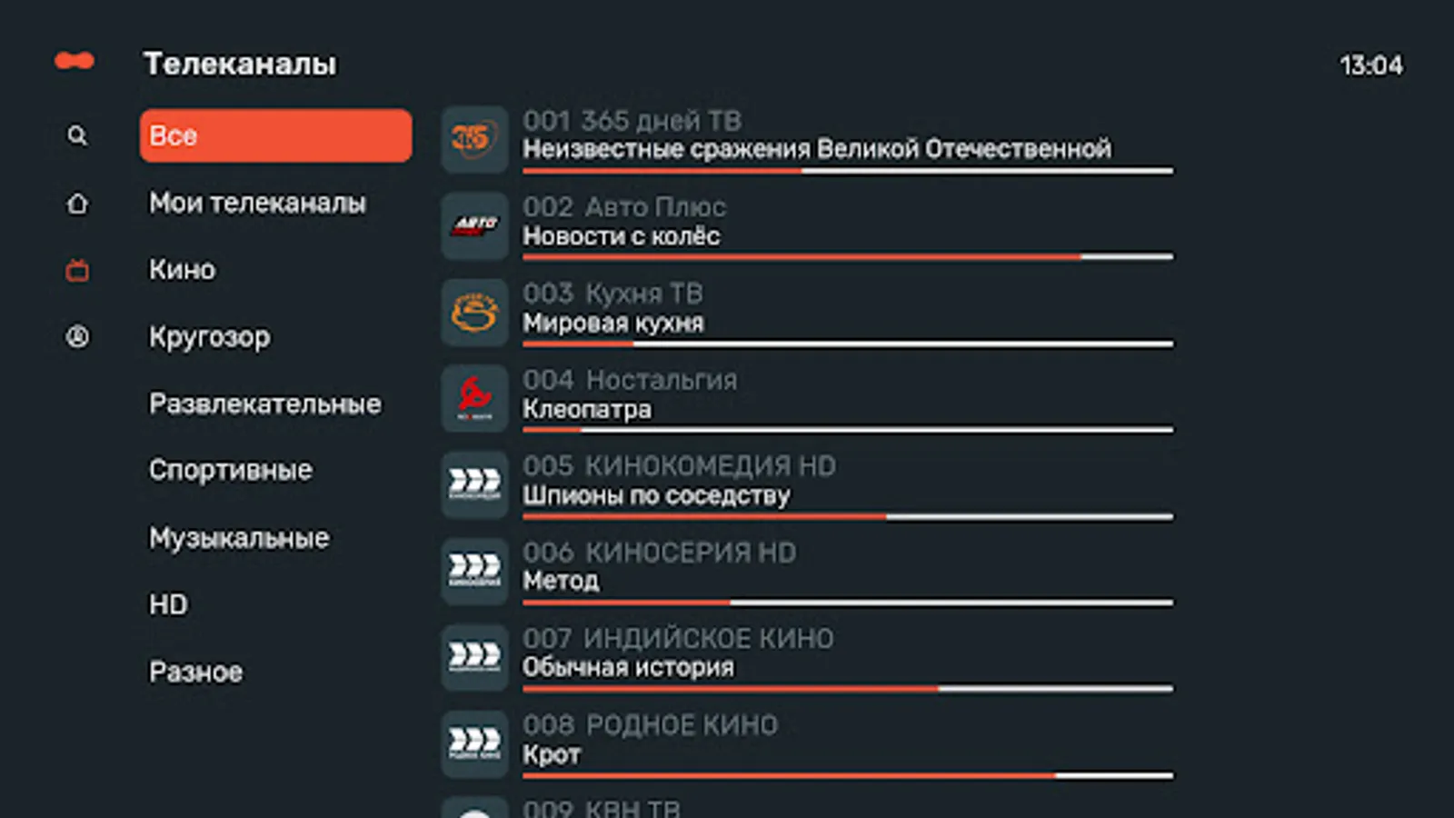 - Choose your favorite TV channels from the thematic categories, or add your favorite TV channels to the "Favorites" category.