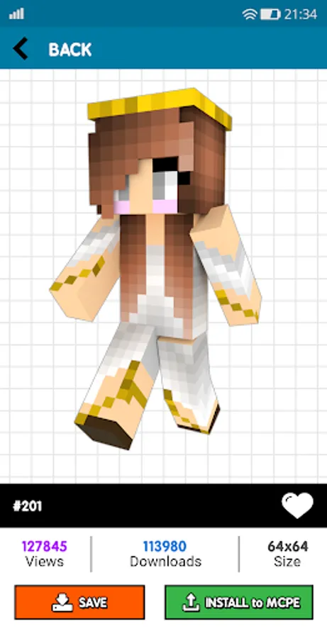 If you are searching for popular Angel skins for your new minecraft player skin, This app is make it for you! Customize your minecraft gaming experiences with coolest skins, show your friends in online multiplayer and dominate other to show who has awesome skins on the server!