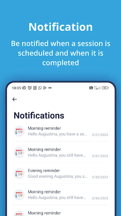 Patients get informed on the scheduled training sessions, as defined by their therapist on the MindMotion Companion platform. Patients receive reminders and have a simple view on the schedule for the day and for the upcoming sessions.