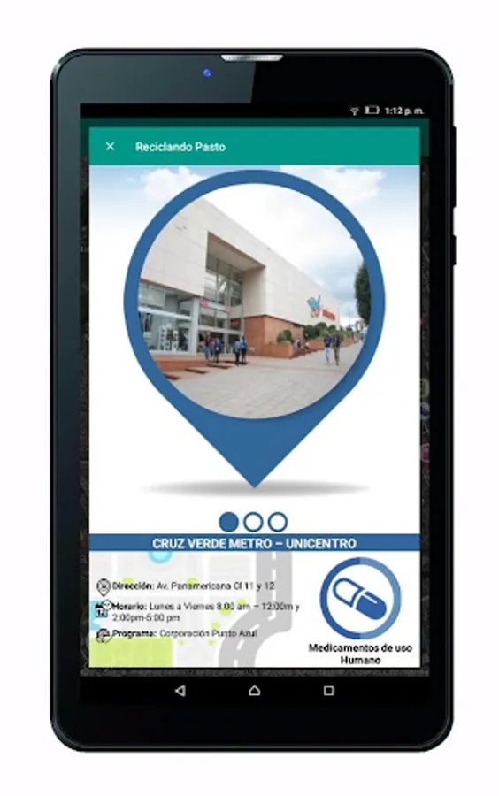 "Recycling Pasture" is an application created to publicize the inhabitants of Pasto different postconsumer waste and the authorized places in the city with a map where you can deposit these items.