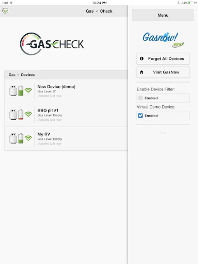 This application is designed to be used with the GasNow GasCheck sensor. The GasCheck application can measure the LPG propane level to tell you the exact fill level and when your cylinder is empty. It can be used on cylinders found in RVs, heaters, BBQ grills, etc. The Gas Check sensors are magnetically stuck to the bottom of your propane cylinder and will periodically measure and wirelessly send the fill level or percentage to the Gas Check app. Stick it on the bottom of your cylinder and know exactly when you are running low on propane! This technology is patent pending.