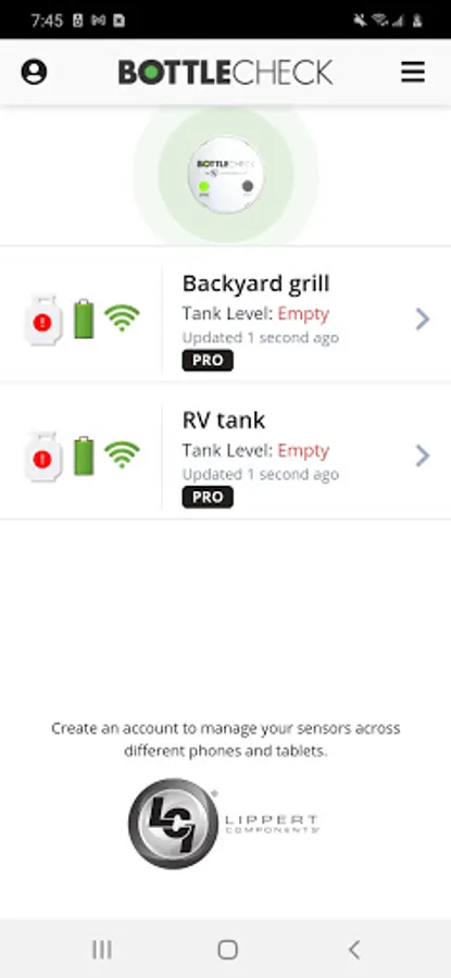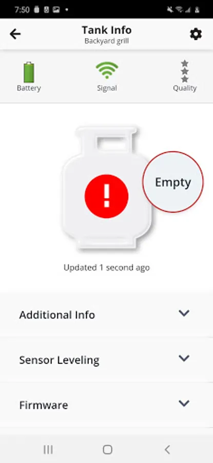 3. Flip the tank over. Once the fluid has settled the app will display a reading. Note that the LPG fluid will be sloshing around in the tank for a few minutes and the quality of the measurements will be low until this has stabilized.