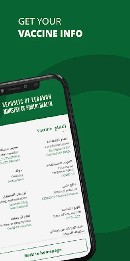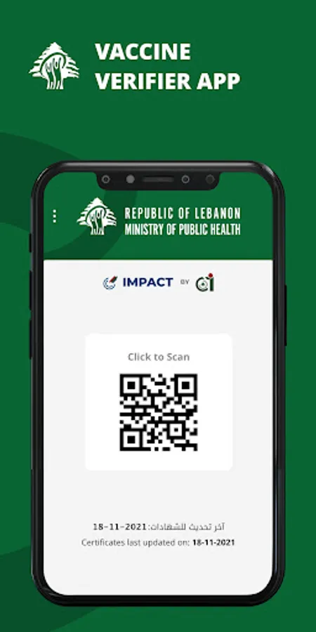 This is the official Lebanese Digital Green Certificate (DGC) QR code scanner, which provides the holder’s information about one of the following: