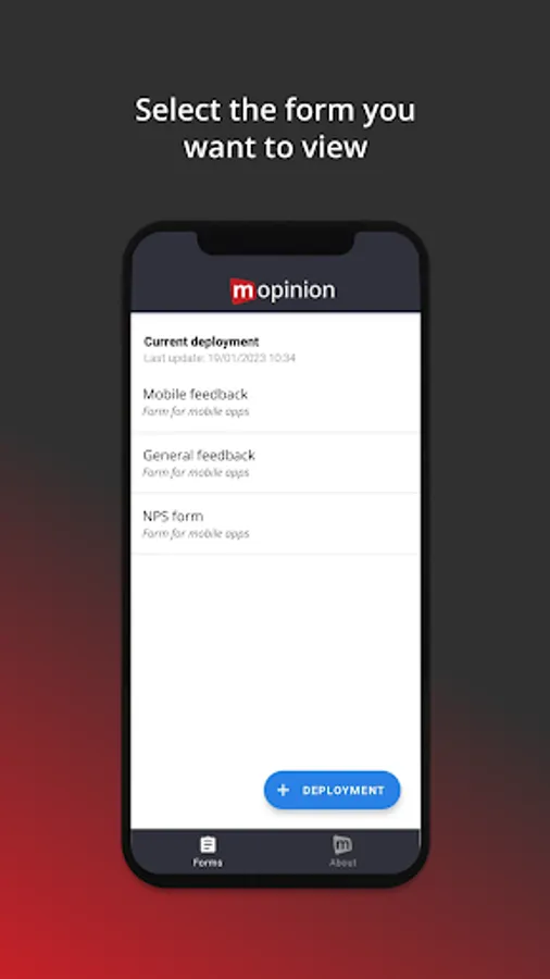Keep your app users happy, and see what they see. Preview your feedback forms with the Mopinion forms app. This app is using our latest SDK version built fully in native Kotlin.