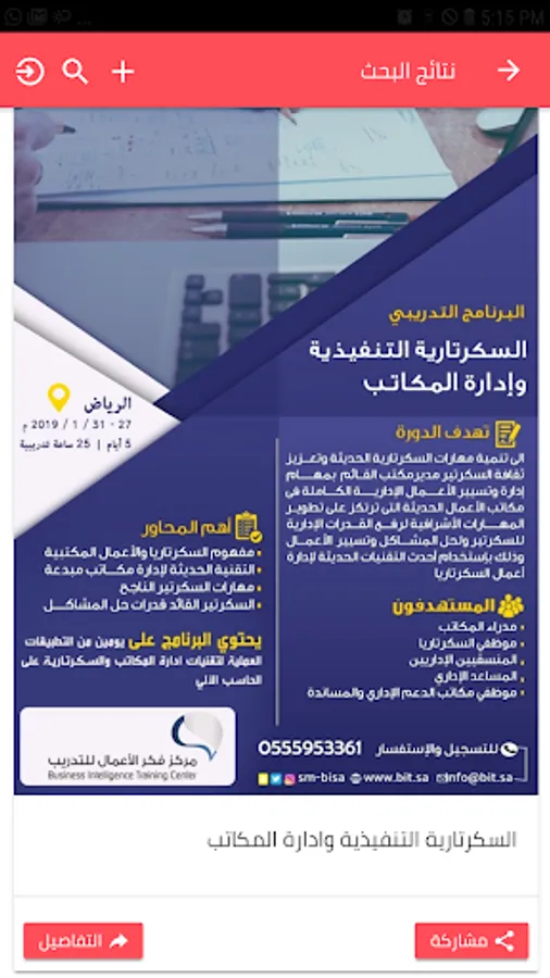 Network platform helps you to search for the best online training courses by specialization or section and the city and according to the audience directed to the training course whether male or female only or male and female, in addition to the network platform to help the owners of courses and training centers to further spread.