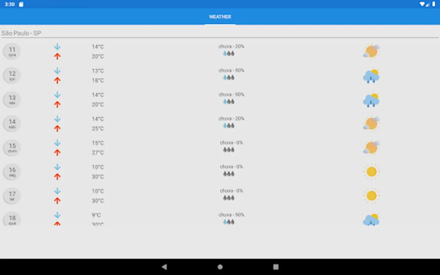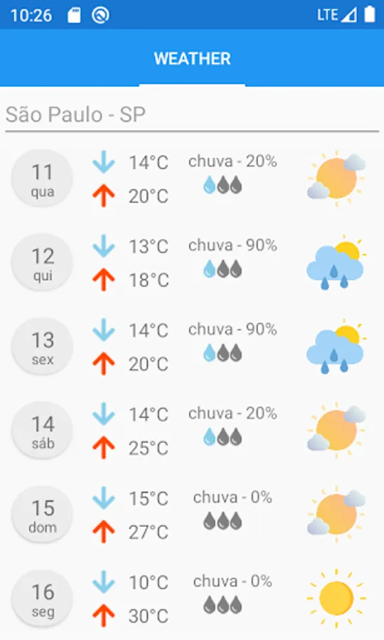 Application to visualize how your city's climate and temperature will be for the next 15 days.