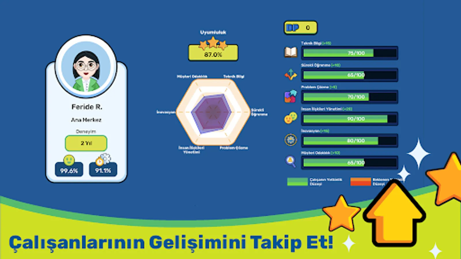 Follow the development of your employees, assign them to centers compatible with their competencies and carry the campus to the top!