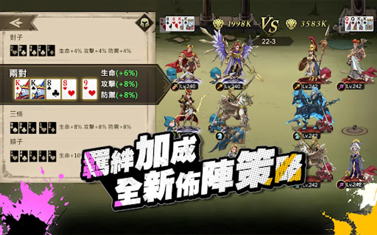 Combining heroes with elements such as jokers, hearts, and spades in poker cards to divide the camps, regardless of pairs, straights, or even straight flushes, matching the right is joining the team, strengthening the fetters of heroes!