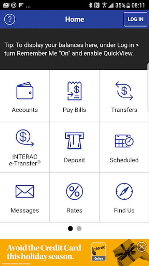 View account balances without logging in when QuickView is enabled.