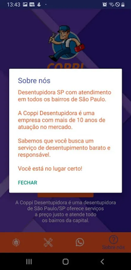 Coppi Desentupidora with more than 10 years operating in the unblocking market in the city of São Paulo, follows a high quality standard. We have qualified teams that are used to the day-to-day activities in the service area; aiming at the well-being of our customers, quickly and accurately, all this to promptly meet all expectations.