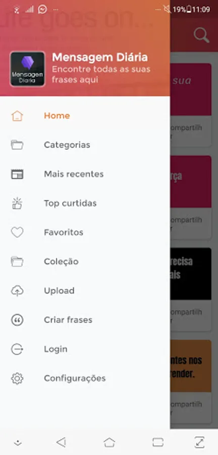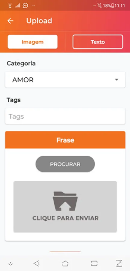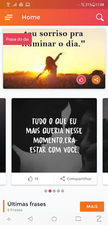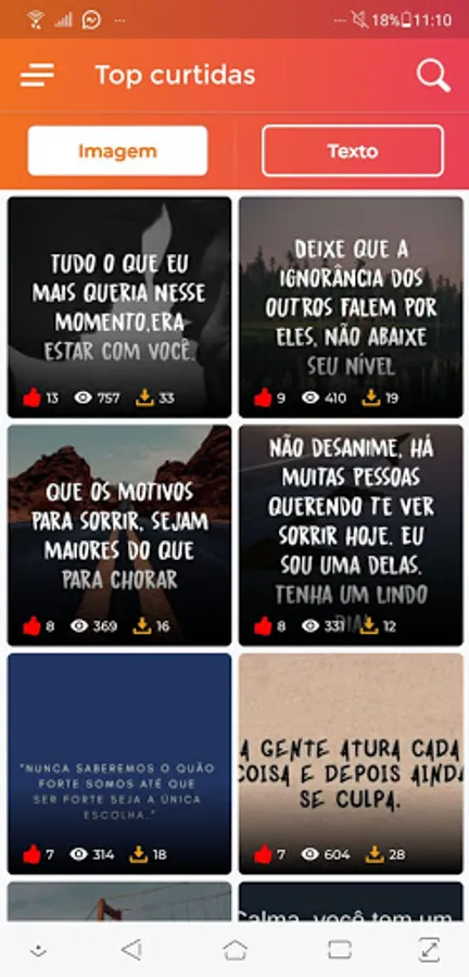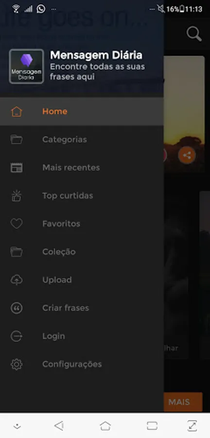 Ah, não podemos esquecer que em nosso app de mensagens diárias você também pode participar, curtindo as imagens, separando as que você mais gosta para enviar em outros momentos e o principal: Você pode enviar suas mensagens para outras pessoas usarem e compartilharem!