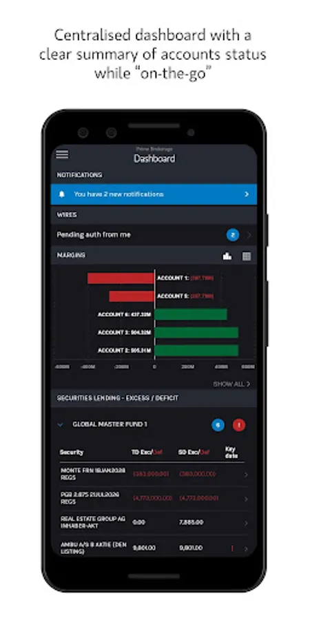 The Prime Brokerage mobile application is a platform that presents Matrix data and workflows on Android devices. Current features include: