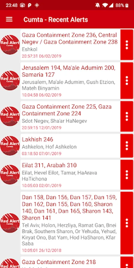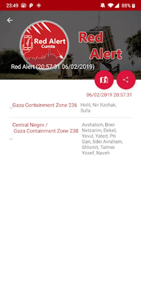 Welcome to Cumta - Red Alerts. Cumta is a system that warns about Red Alerts (Rocket Sirens) in Israel, in real time.