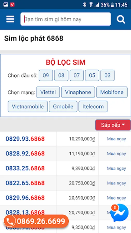 + Phân loại Sim theo từng nhóm: theo giá, theo nhà mạng....