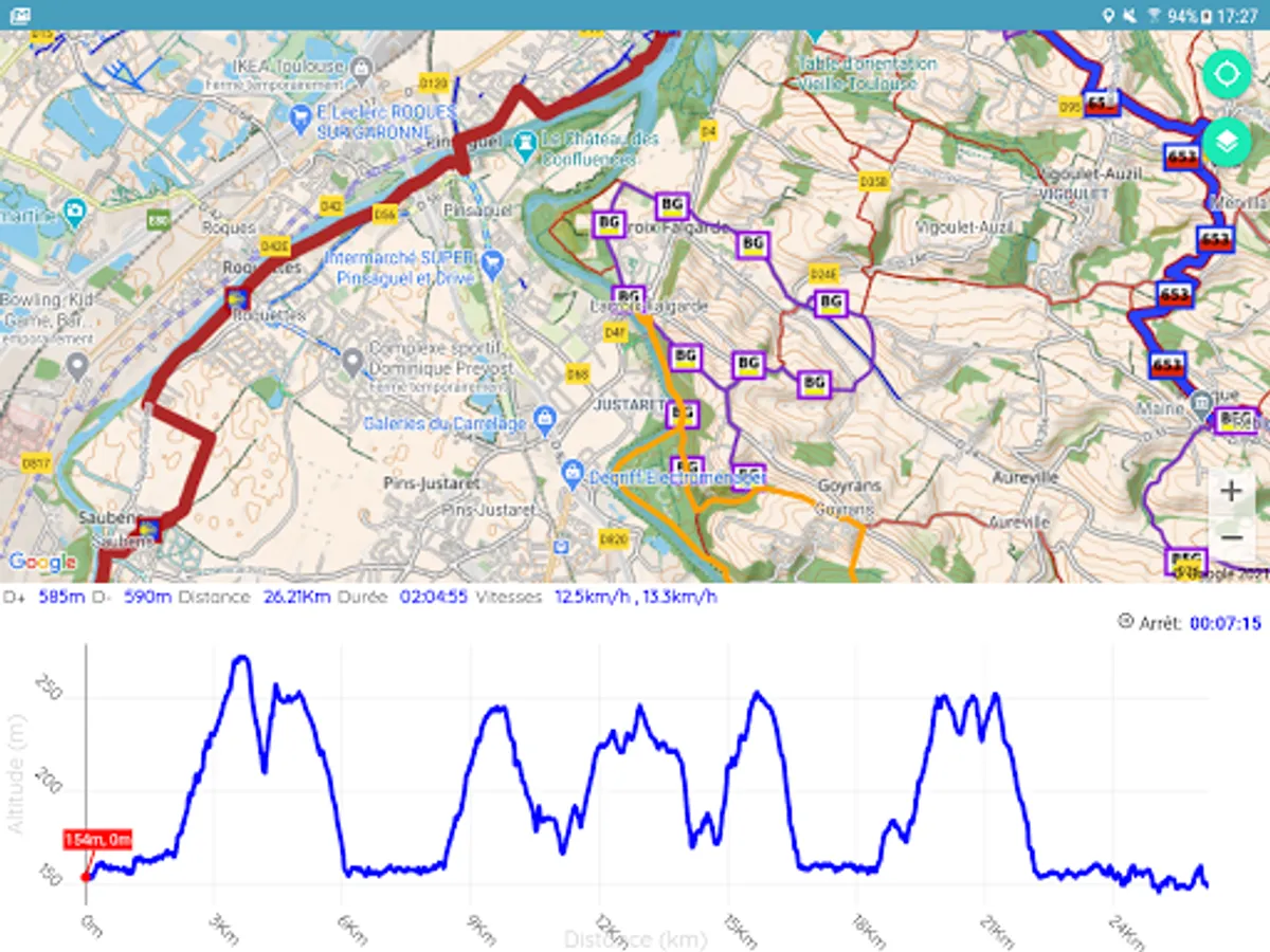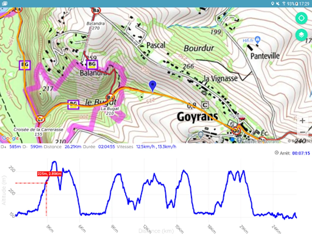 Thanks to the quality screen of your smartphone MA GPX replaces any hiking GPS, as you can: