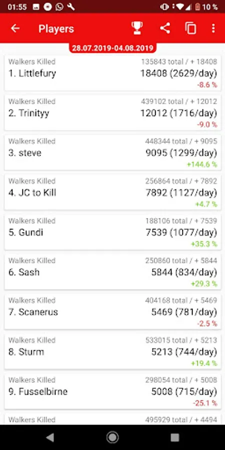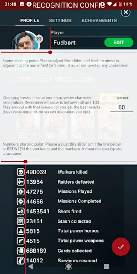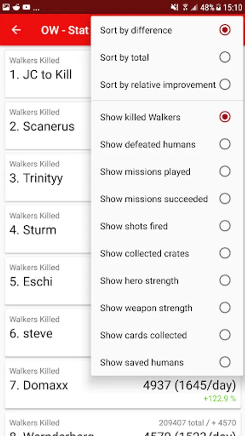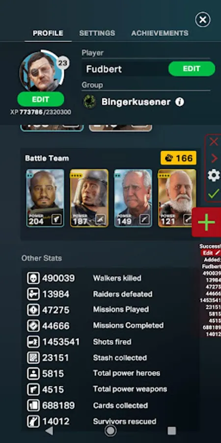 This applications aim is to make stat and activity tracking easier for you and your group in TWD: Our World. The app basically consists of two parts: A widget which lets you fetch a players stats and an internal database which saves and displays your data in some list views