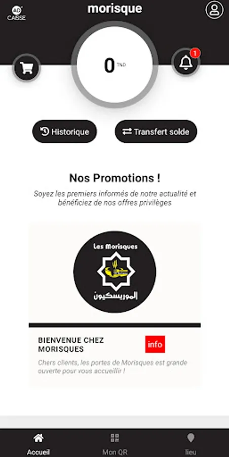 Les Morisques is an application made available to customers of Café Resto Les Morisques allowing customers to place orders online, consult their loyalty balance, receive and consult promotions and offers from Café Resto Les Morisques in real time, go through a virtual visit of the premises, transfer loyalty points to another Café Resto Les Morisques Customer, consult the history of their transactions ...