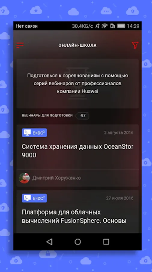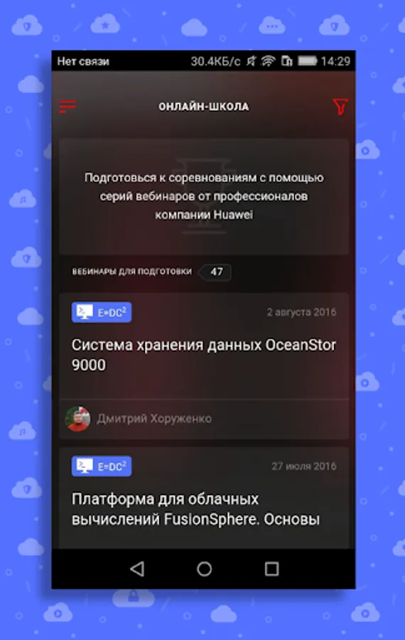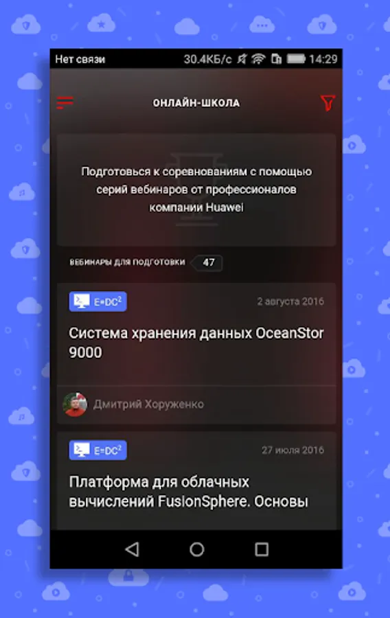 Also, using the application, you can access the online school. Watch lectures by experts and improve your knowledge in the field of mobile communications, technologies and protocols of interaction in IP networks, virtualization technologies and artificial intelligence.