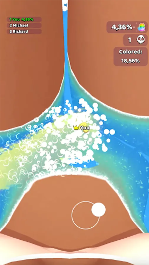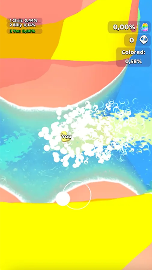 You control the bomb and it's swim and create a trail and a colored foam. You release, the bomb stops, explodes foam and captures the territory around a trail.