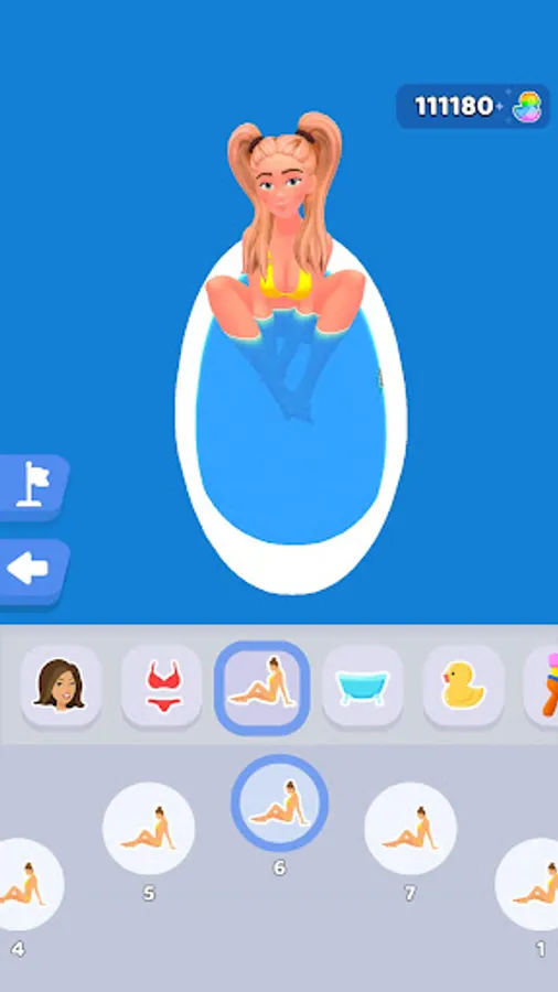– You are not alone in the bath. Very pretty girl is taking a bath with a nice pose and watching your capturing. She is so beautiful! Bypass her arms and legs or swim under them.