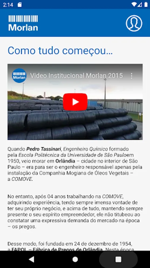 Did you know that Morlan was already called FAPOL, or that in the first years of its existence it was a nail factory? Learn a little more about the company's history in the Institutional area of the application.