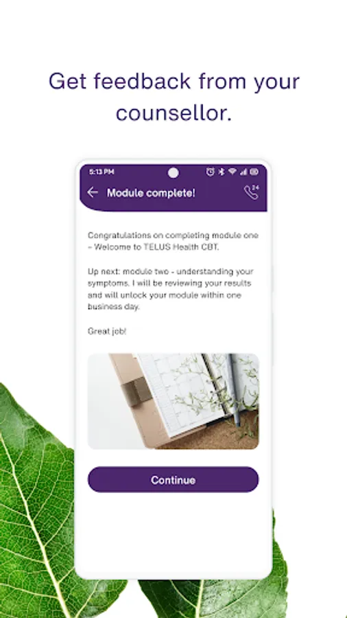 TELUS Health CBT is CBT delivered by a therapist through an app. Combining a personalized therapist-guided program with digital tools and exercises to bring CBT to life wherever and whenever needed.
