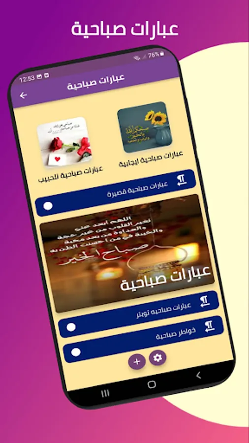 The application of morning phrases allows you to identify the insomnia religious morning thoughts and the latest talk about the morning is short. We also offer you morning words of love and the most beautiful sweet morning words. We also show you in the application of morning phrases a list of morning phrases and morning phrases of love and the best morning thoughts for the lover and the newest morning words For love and the most beautiful morning phrases, as well as morning phrases for my girlfriend.