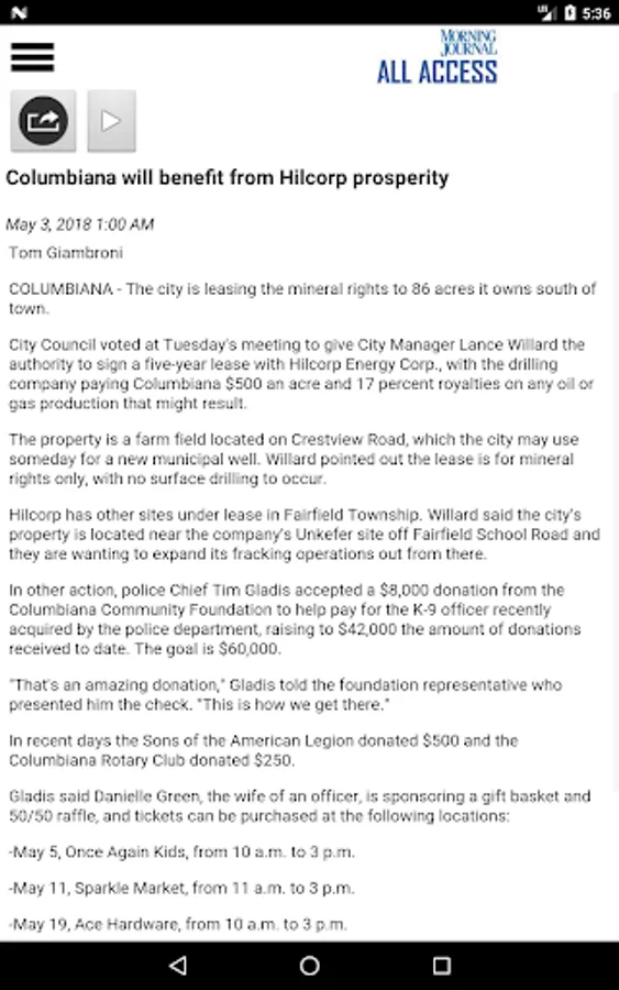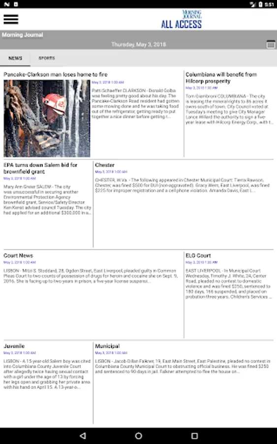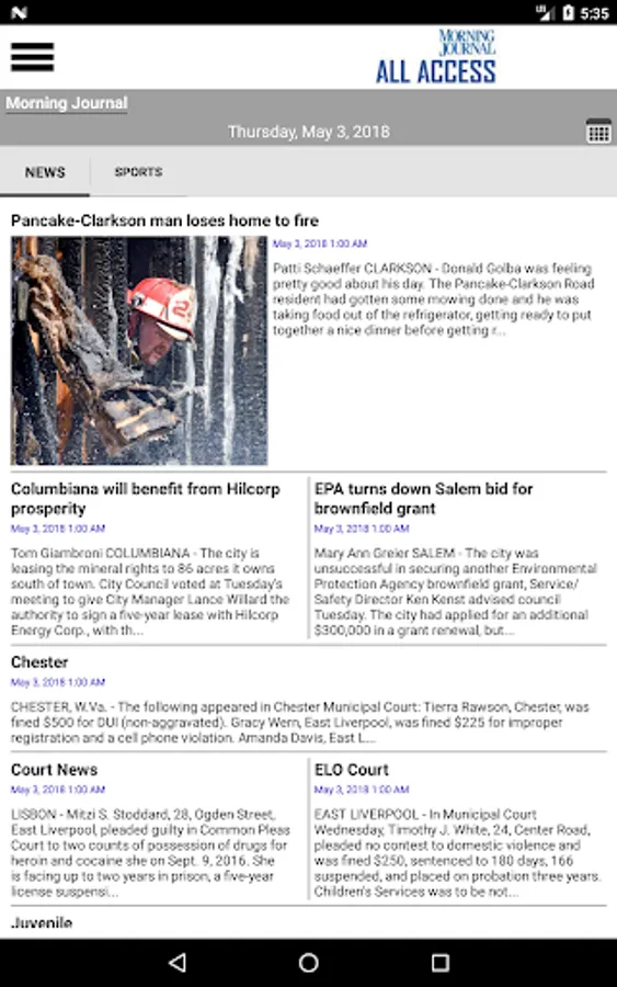 Stay on top of news from Lisbon and surrounding areas by receiving the full print version of the Morning Journal on your Android device. Every page of every edition is delivered to your device. The Morning Journal is the best source for local and national news, sports, weather and features in Lisbon and Columbiana, Jefferson, and Mahoning counties in Ohio and Hancock County in West Virginia. Download the app to view the printed pages of the newspaper or read headlines and stories along with related photos in a built-in story viewer.