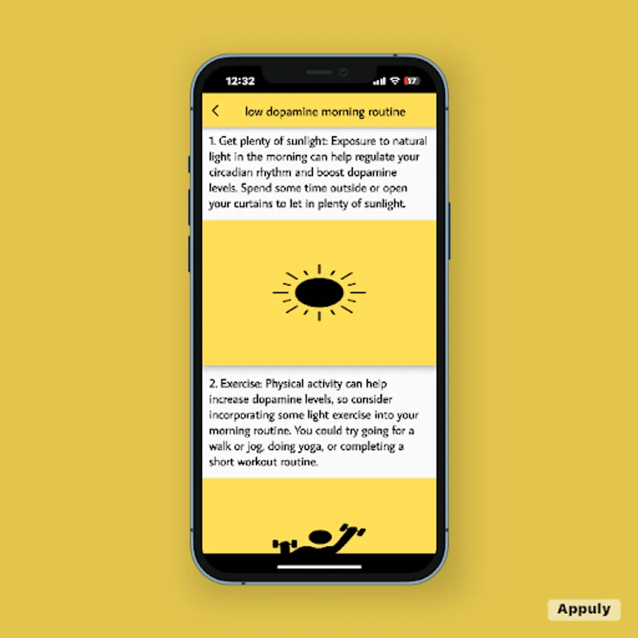 Our app is packed with morning routine ideas that are designed to help you boost your productivity, energy levels, and overall well-being. Whether you're looking to establish a healthy morning routine or a low dopamine morning routine, our app has got you covered.