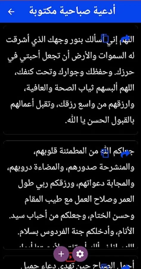 What distinguishes the application of morning supplications written from others is that it is an application without the Internet. That is, you will not need to connect to the network if you want to read one of the supplications or copy and share it with friends. Morning supplications for loved ones contribute to the strengthening of relations between people, especially when you send written morning messages to your loved ones in the form of a supplication, this will make them feel happy and interested and will fill their day with goodness and blessing.