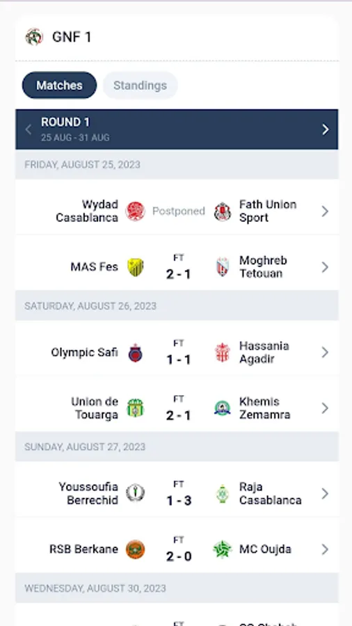 Welcome to Moroccan League Match Tracker, your ultimate app for real-time updates on Moroccan League match results. Immerse yourself in the world of Moroccan football and never miss a goal, assist, or thrilling moment in the league. Whether you're a passionate fan or just curious about the teams, our app provides comprehensive coverage, player statistics, and team standings. Stay informed about match outcomes, upcoming fixtures, and match timings using our Moroccan League Schedule Tracker. Experience the excitement of Moroccan football with live scores and timely updates. Download now and enjoy Moroccan League matches like never before