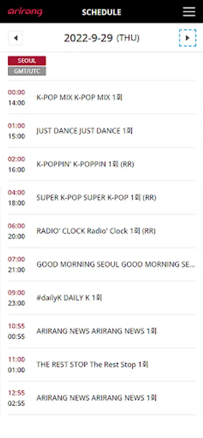Arirang Radio is broadcast 24 hours a day. The station delivers an eclectic array of music, including traditional, classic, pop, mainstream, world music, as well as information, including the news, current affairs, culture, life, weather and traffic.