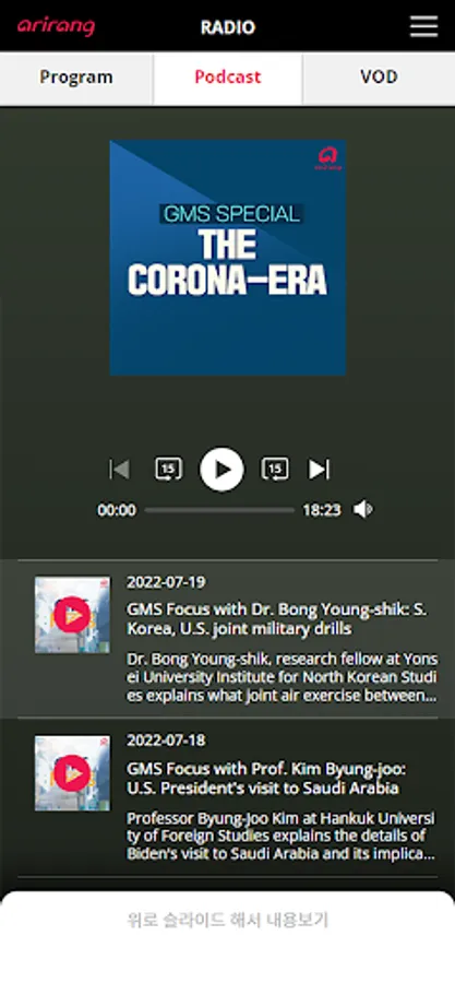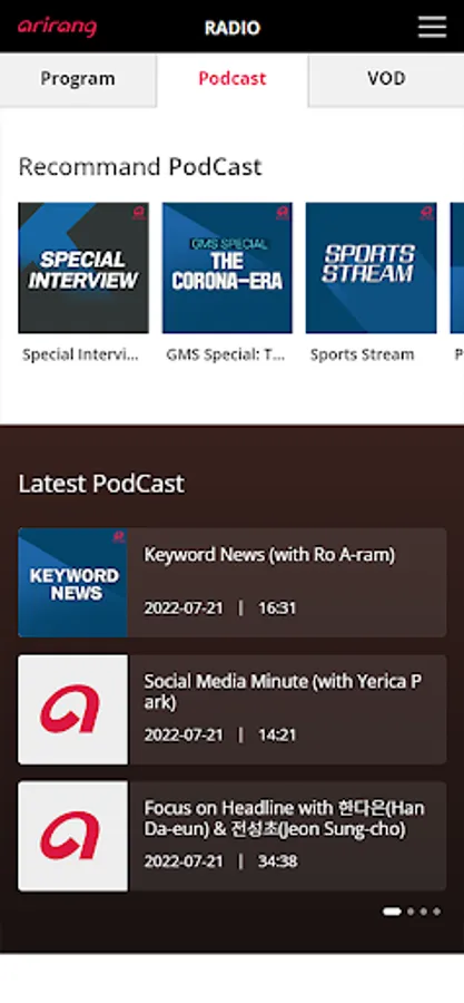 And you can listen to Arirang Radio’s past programs whenever you want through downloading or playing streaming AODs.