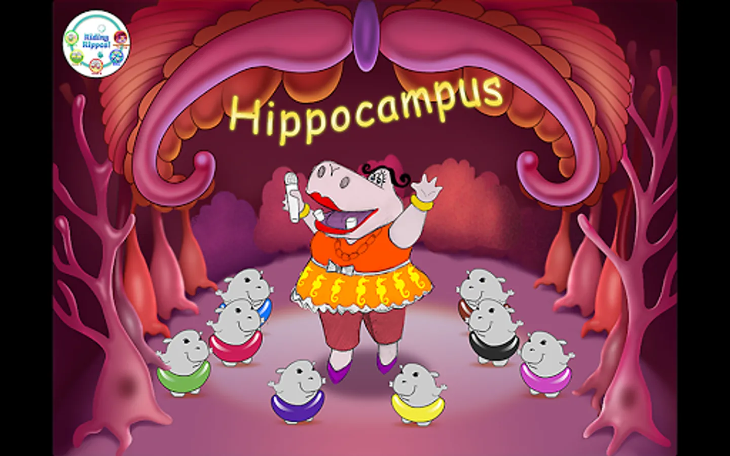 The lively song Hippocampus Hip Hop is available in both the free and the full app. The little hippos dance around Ms. Hippo as she performs and teaches about how your hippocampus helps you remember.