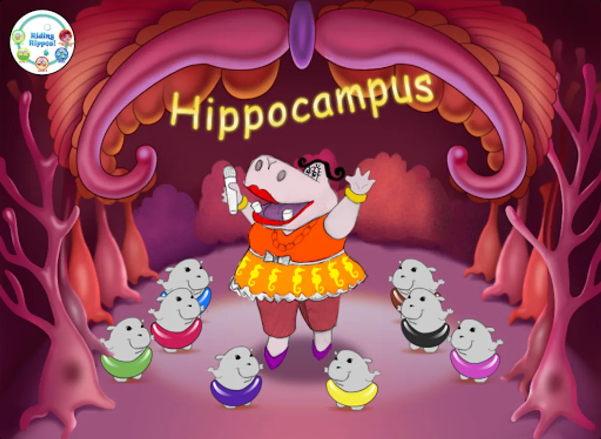 The lively song Hippocampus Hip Hop is available in both the free and the full app. The little hippos dance around Ms. Hippo as she performs and teaches about how your hippocampus helps you remember.