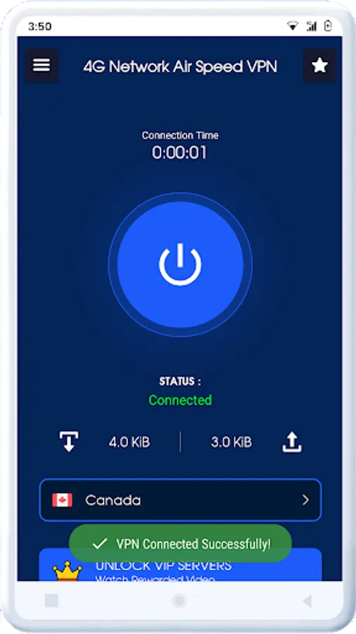 “4G Network Air Speed VPN” is a free to download VPN app which you can use to open the internet and see it as it was meant to be – free and unlimited.