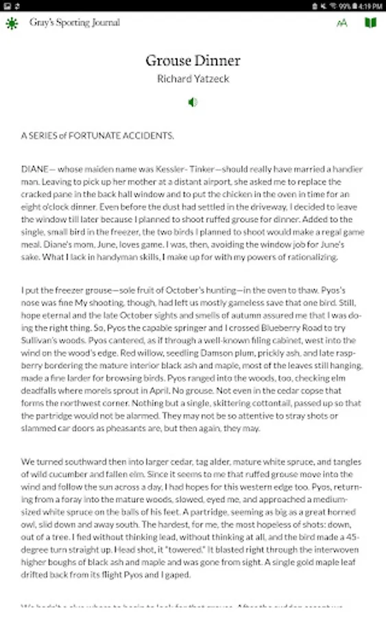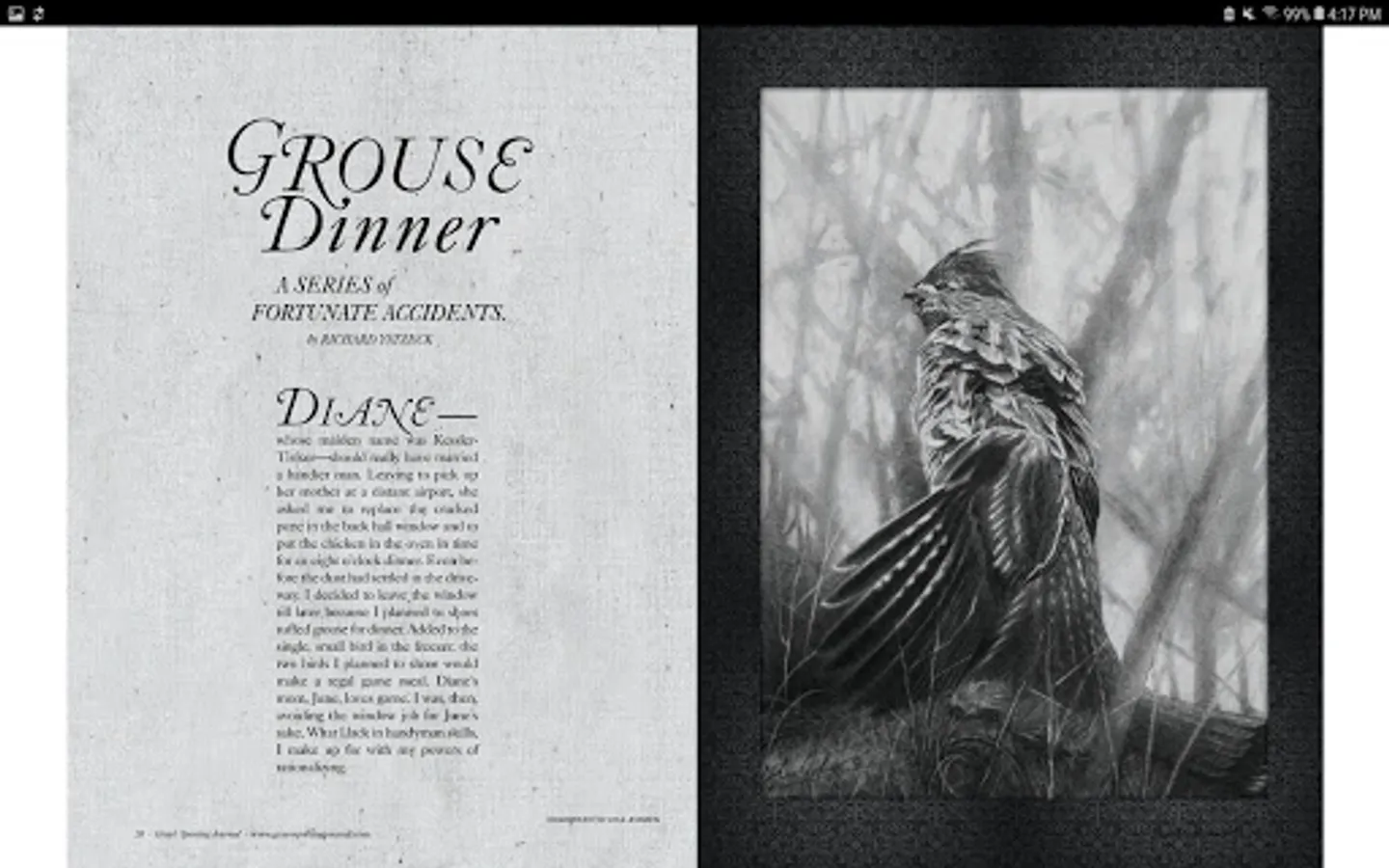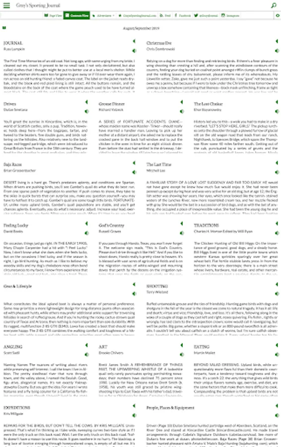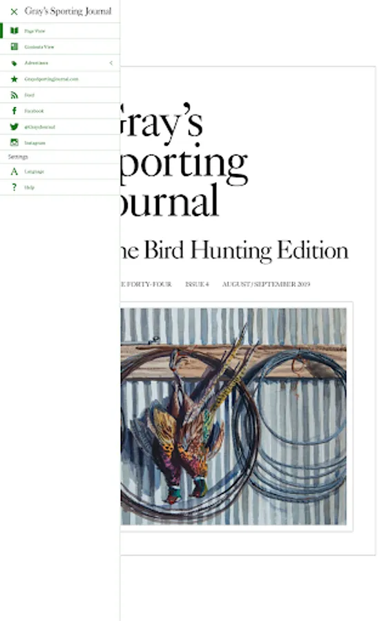 Welcome to Gray’s Sporting Journal, the world’s leading periodical of sporting literature, art and photography. Since 1975, Gray’s has featured the finest essays, travel writing, short stories, poetry, fine art, and photographic journals from around the world of hunting and fishing. Special emphasis is on fly fishing, wingshooting, big-game hunting, and sporting travel. Gray’s Sporting Journal is published (7) seven times annually.