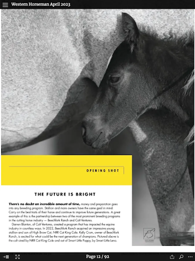With a paid annual subscription, each new edition of Western Horseman magazine will be delivered straight to your digital device. That’s one full year of access for $18.00 featuring the same great content as the print version. You can read the magazine on your device by downloading individual issues so you can take them with you to the barn, the arena or anywhere your travels take you.