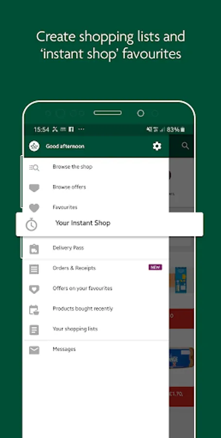 • Instant Shop - we’ll automatically create a typical order for you, based on your recent deliveries
